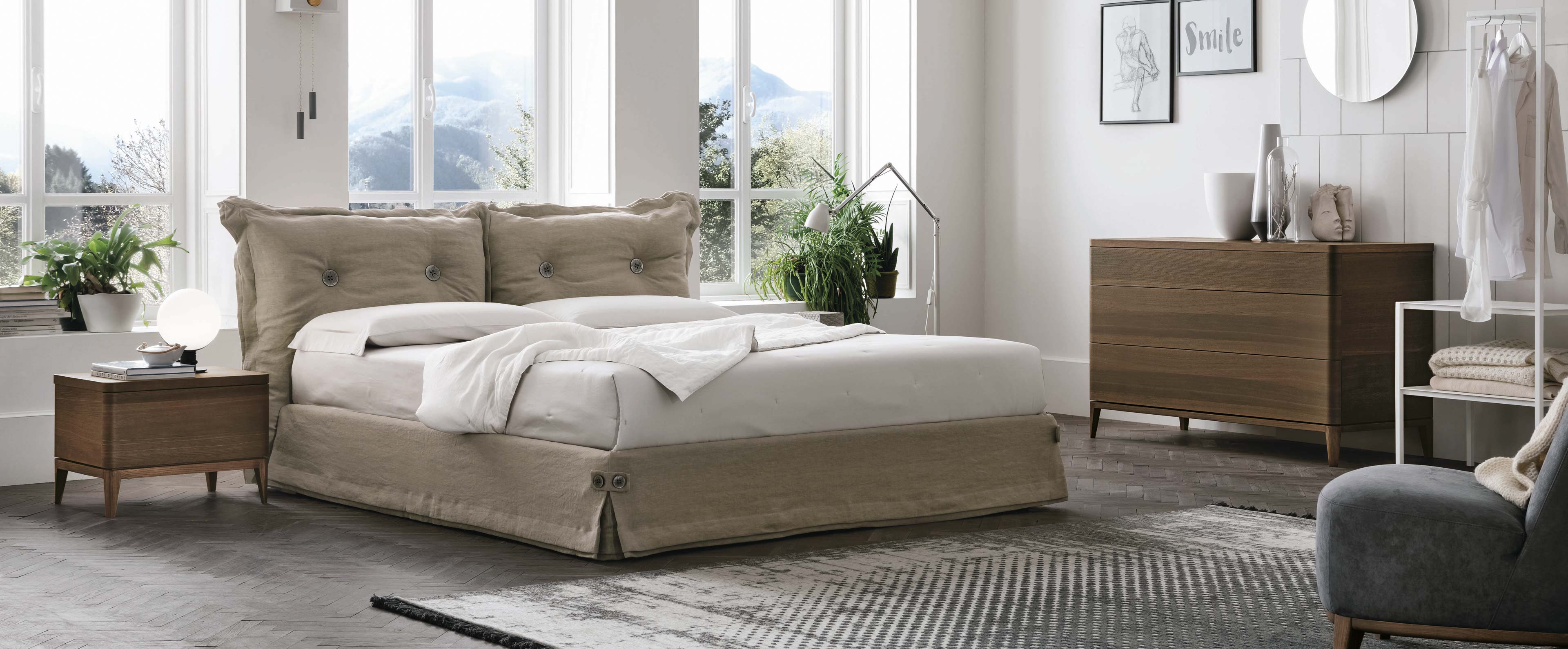 TMS. Amami olasz dizájn franciaágy. Bármely hálószoba méltán stílusos központi darabja lehet. Az eredeti formatervezésű minőségi bútordarab többféle méretben és választható színű, textúrájú felületekkel kapható.