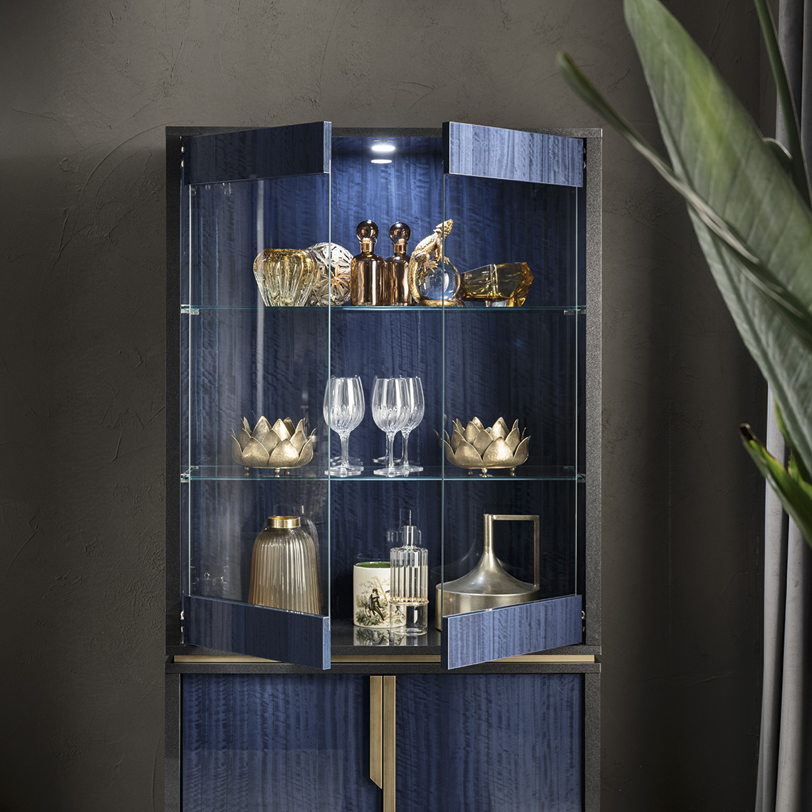 AL. Oceanum monumentális és lenyűgöző megjelenésű olasz dizájn vitrin kétféle változatban. Modern stílusú vitrin kiváló minőségű fából és üveganyagból. Nagy méretű tárolóhelyeivel tálaló szekrénynek és könyves szekrénynek is megfelelő. A modellhez számos további, stílusban hozzáillő termék választható.