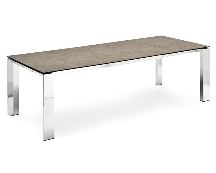 Con. Royal kiterjeszthető olasz dizájn asztal. Fémvázszerkezete és mechanikája révén a lábak minden hossz esetében az asztal végénél maradnak, hogy a körötte ülők számára a zavartalan kényelmet biztosítsa. Az asztallap üvegből készül, melyet kerámiával is lehet kombinálni. Többféle színárnyalatban és mintázatban elérhető, amelyhez számos további stílusban hozzáillő termék is választható.
