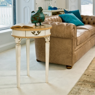 Tonin Casa Fox lámpaasztal. Olasz klasszikus dizájn lámpaasztal különböző színű lakkozott, festett fából, fiókkal, esztétikus lábbal, korhű megjelenésben. A modellhez számos további stílusban hozzáillő termék választható.