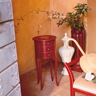 Tonin Casa Kao lámpaasztal. Olasz klasszikus dizájn lámpaasztal különböző színű lakkozott, festett fából, esztétikus fiókokkal, korhű megjelenésben. A modellhez számos további stílusban hozzáillő termék választható.