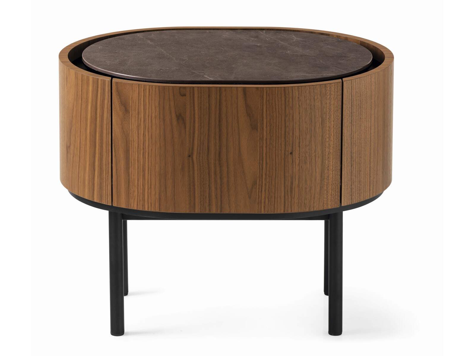 A Calligaris LAKE éjjeliszekrény az olasz design és funkcionalitás tökéletes találkozása. Letisztult, modern megjelenését a fekete festett acéllábak, valamint a gőzölt dió- vagy füstszínű fafurnér ívelt szerkezete adja. A prémium asztallap választható extra tiszta vagy fekete szitanyomású üveg, illetve exkluzív kerámia (fekete Calacatta márvány, bronz vagy selyemfehér márvány) változatban is elérhető.