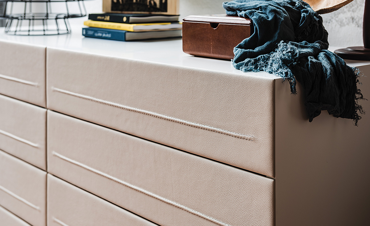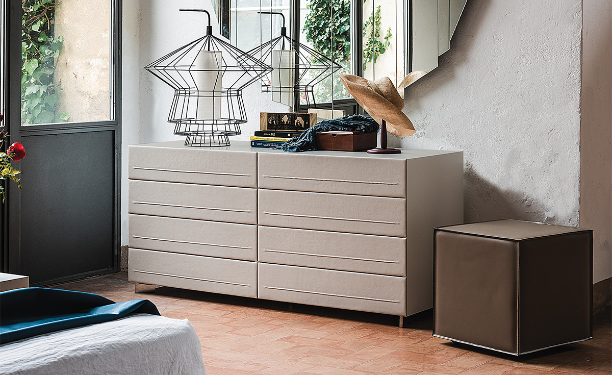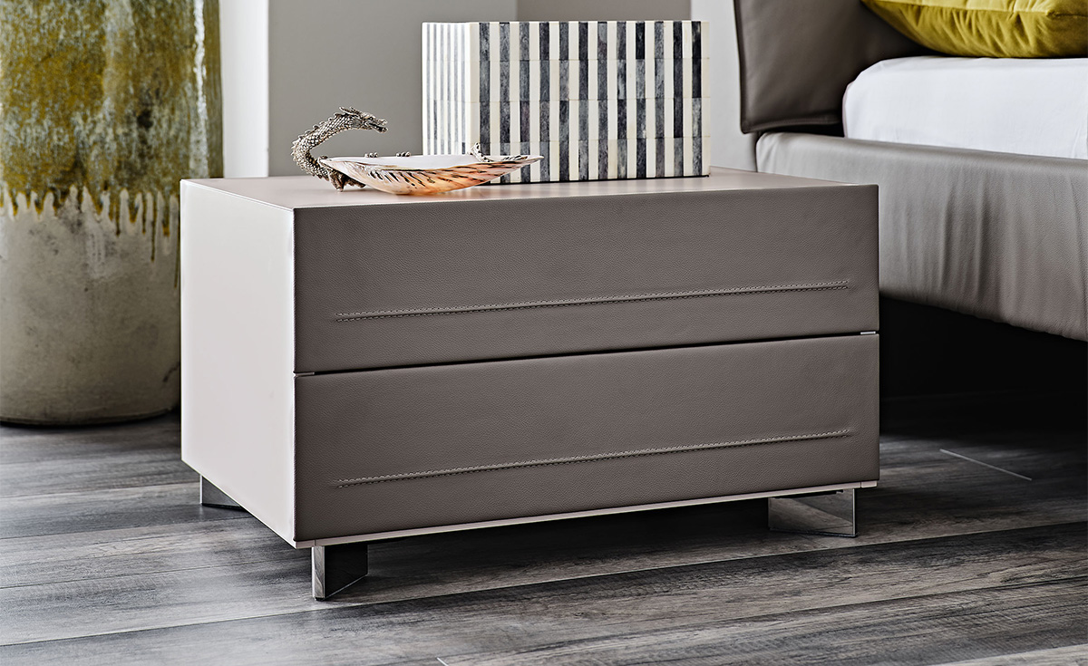 Egyedi külső, olasz tervezés! Bőr bevonóval szerelt éjjeliszekrény a Cattelan Italia jóvoltából.