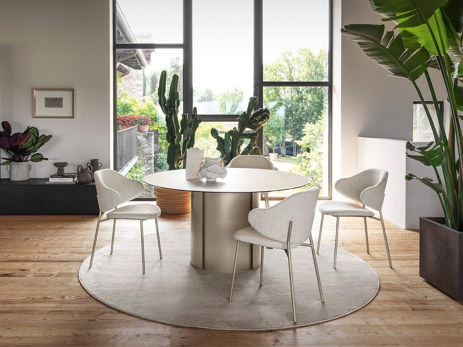 A Yoroi kerek étkezőasztal – Kerámia a szamurájok ősi páncélzatából merít ihletet. Központi talapzata függőleges barázdákkal és fa betétekkel rendelkezik, erőteljes megjelenést kölcsönözve az asztalnak. Ez a dizájn tökéletes egyensúlyt teremt a történelmi és a kortárs stílus között.