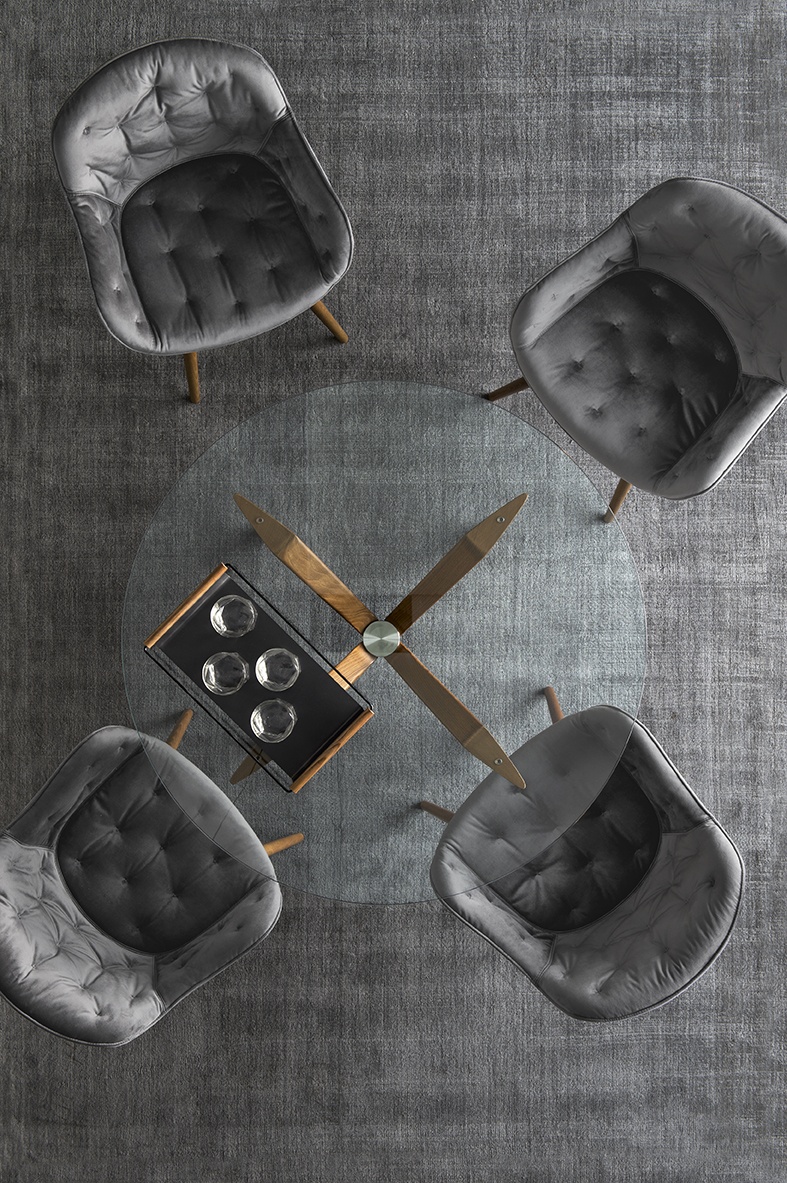Ez a modern, mégis időtálló étkezőasztal harmonikusan ötvözi a könnyed, áttetsző üveget a természetes fa melegséggel, így ideális választás otthoni étkezőbe, de akár professzionális stúdiókba is. A négy ferde láb, amelyek „X” alakban kapcsolódnak, központi oldalsó taggal fém elemekkel összekötve stabil, mégis légies megjelenést biztosít.