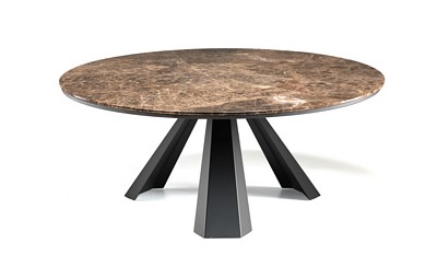 Az Eliot Keramik Round verzió kerek asztallappal készül, három acéllábbal, amelyek biztosítják a stabilitást és az esztétikai egyensúlyt. A különleges kerámia felületek elegáns és exkluzív megjelenést kölcsönöznek az asztalnak, amely így tökéletes választás modern étkezők számára.