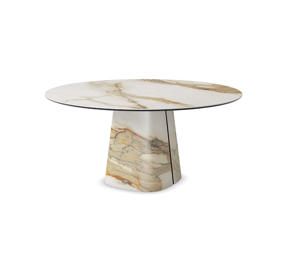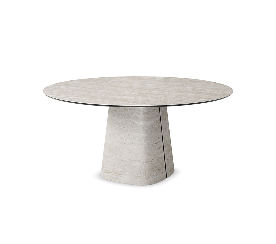 A Rado Keramik Round Outdoor központi talpa innovatív kerámia technológiával készült, amely a modern design és az olasz kézművesség csúcspontját képviseli. A talp két szimmetrikus részből áll, és a rövid oldalon található süllyesztett, kerámiával borított horony elegáns részletként töri meg a homogén felületet. A talp kialakítása lehetővé teszi, hogy az asztal dinamikusan reagáljon a fény és árnyék játékára, így minden szögből új karaktert mutat, szoborszerű jelenlétet biztosítva a kertben vagy a teraszon.