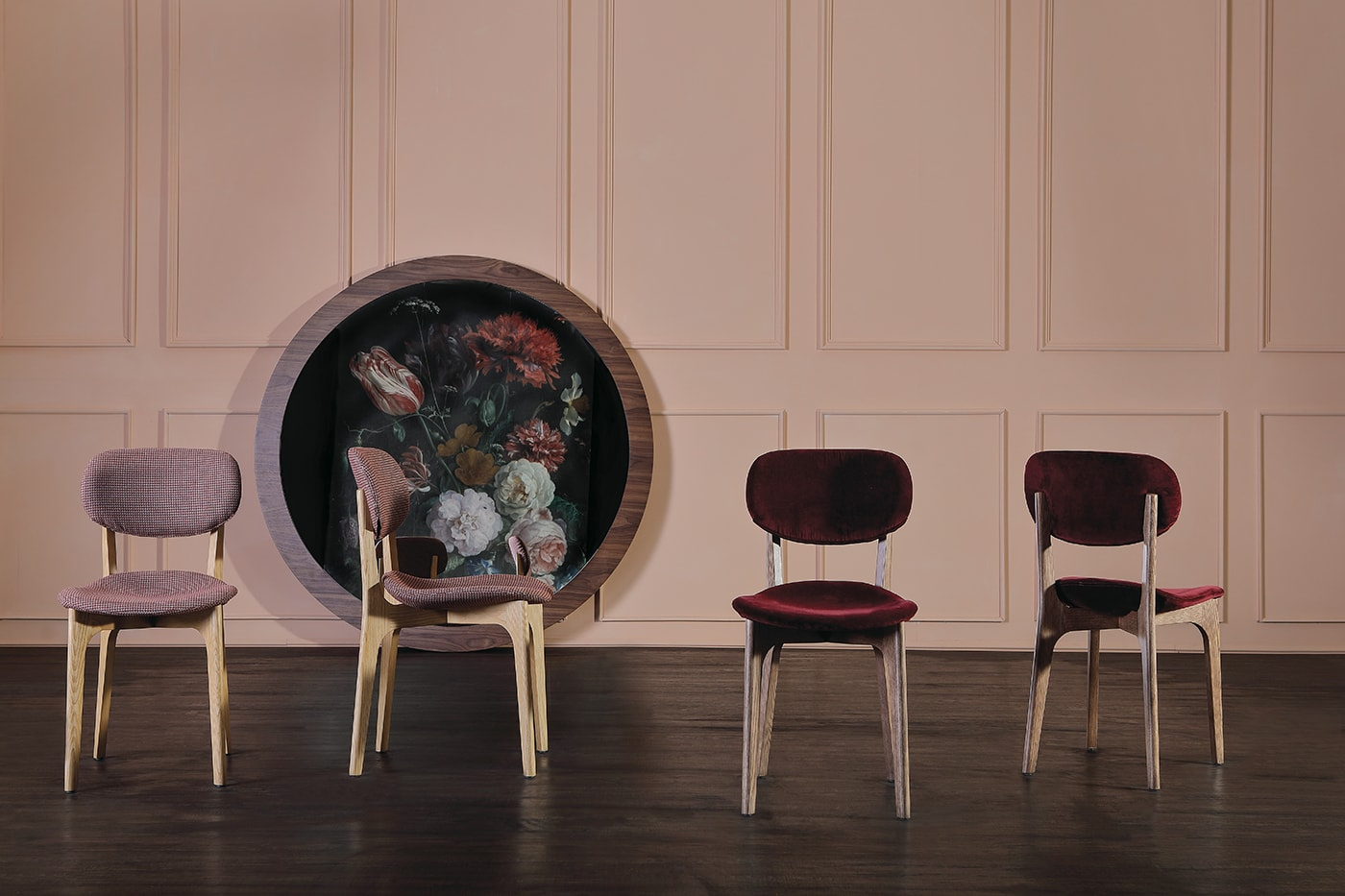 Rengetegféle színű és típusú választható szövet bevonóanyaggal kárpitozott támla- és ülőrész. Az örökzöld formatervezésű modern szék nem csak bárhol jól mutat, de maximálisan kényelmes ülőhelyet biztosít használójának. Vázszerkezete strapabíró, minőségi faanyagból, tölgy-, vagy diófából készül.