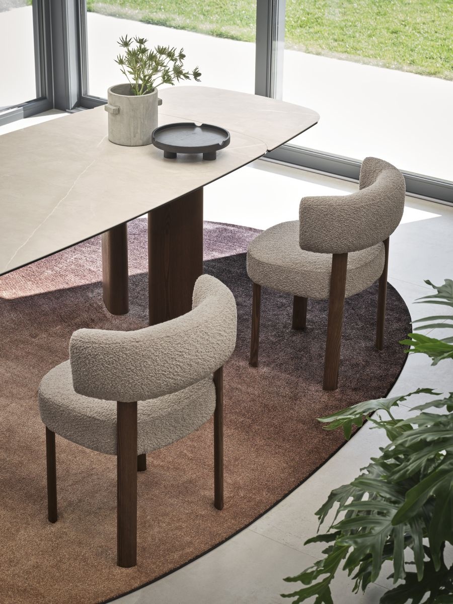 A Calligaris Glen étkezőszék az olasz formatervezés minimalista eleganciáját és ergonomikus kialakítását ötvözi. Támlás, kárpitozott vagy natúr fa vázas változatban elérhető, mely harmonikus vizuális egyensúlyt teremt a szoliditás és könnyedség között. A görbített háttámla és a formatervezett ülés a test természetes tartását követi, így hosszabb ülés során is kényelmes támaszt nyújt.