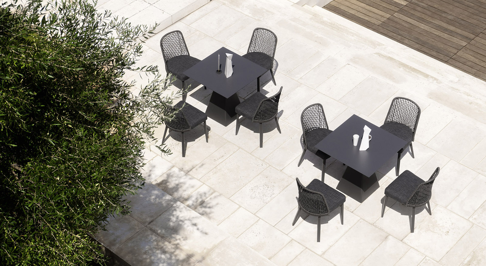 VAR. TOW. stílusos formatervezésű dizájn étkezőasztal. Minimalista és egyben elegáns, piramisalakú lábkonstrukció, mely többféle típusú asztallappal kombinálható. A Var. Tow. kollekció termékei tökéletesek kertek és egyéb külterek hangulatos, esztétikus berendezésére.