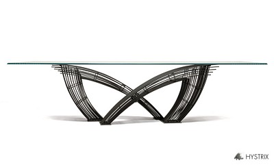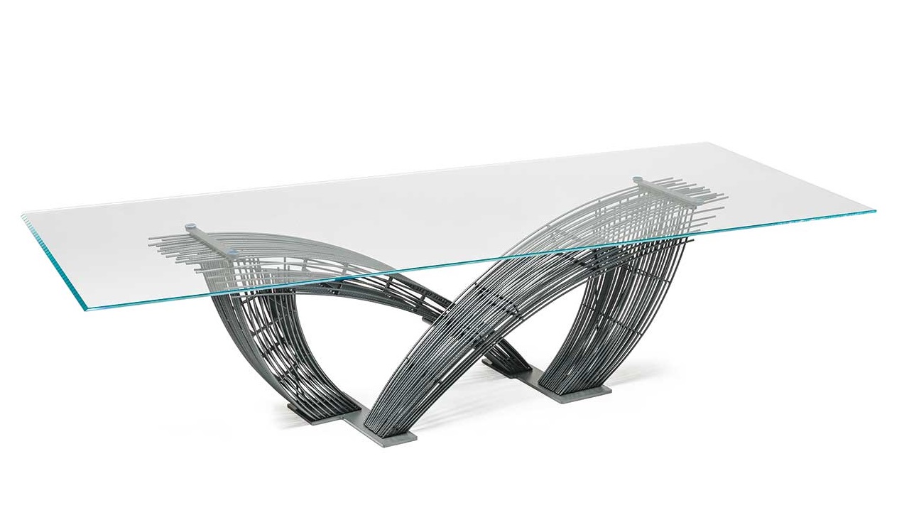 Hystrix étkezőasztal. Olasz dizájn asztal 15 mm vastag, áttetsző vagy átlátszó asztallappal, fényezett fém lábbal. Többféle méretben elérhető, amelyhez számos további stílusban hozzáillő termék is választható.