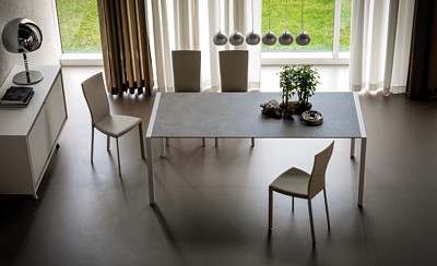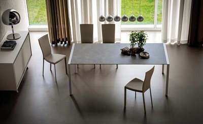 Cat. Pedro és Pedro Drive étkezőasztal. Olasz dizájn fix és bővíthető asztal többféle laminált asztallappal és fém lábbal. Többféle méretben elérhető, amelyhez számos további stílusban hozzáillő termék is választható.