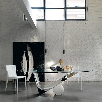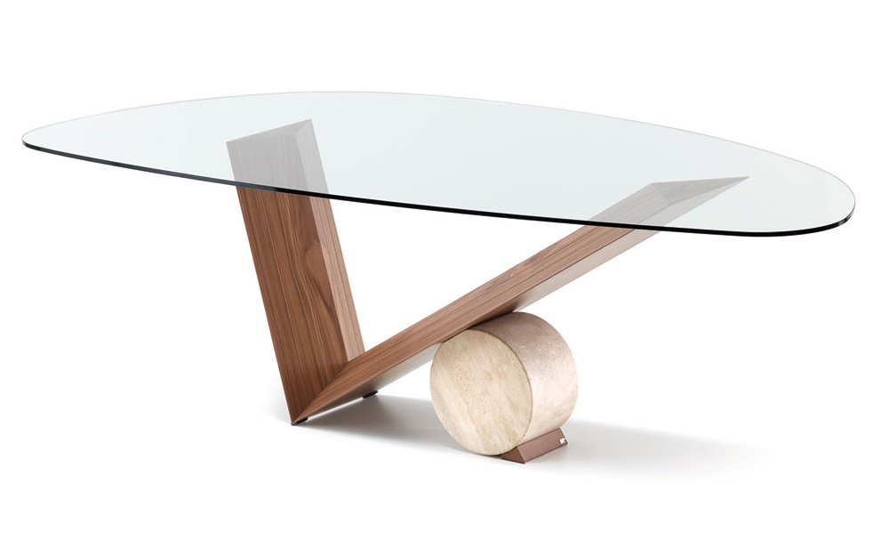 Cat. Italia Valentino és Valentinox étkezőasztal. Olasz dizájn asztal üveg asztallappal, fa vagy fém lábbal és márvány cilinderrel. Többféle méretben elérhető, amelyhez számos további stílusban hozzáillő termék is választható.