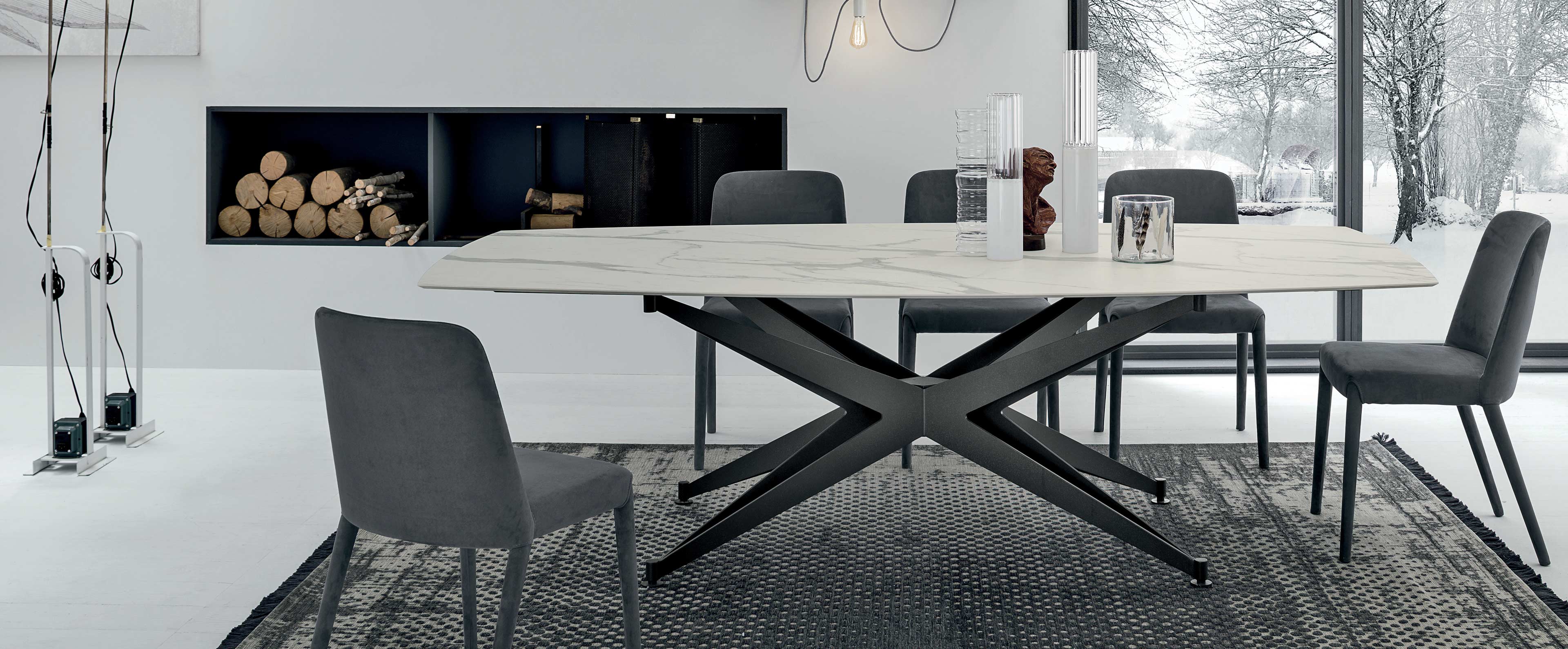 a kifinomult mintázatú üveg, fa, vagy márványos asztallap modern és egyben tökéletes elegye a különböző anyagoknak és a belőlük fakadó esztétikumnak. Választható színekben és textúrákban kapható.