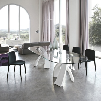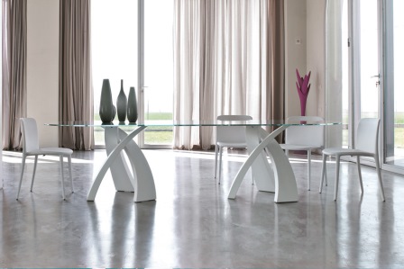 Tonin Casa Big Eliseo étkezőasztal. Olasz modern dizájn étkezőasztal, ívelt lábformájával, -vonalával az étkezők jellegzetes exkluzív tartozéka tud lenni. A modellhez számos további stílusban hozzáillő termék is választható.