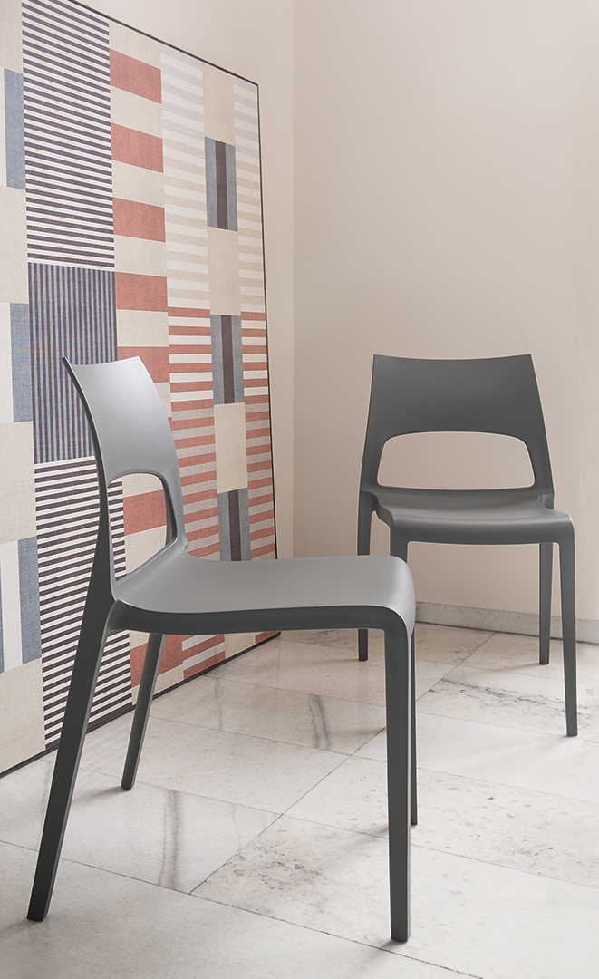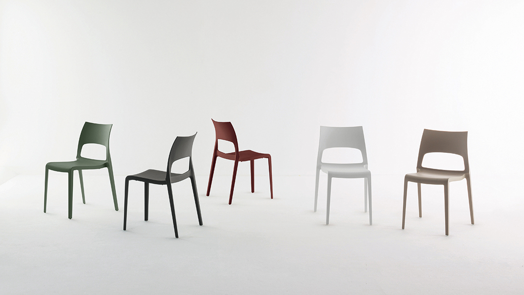Bond Idole étkezőszék. Olasz dizájn egymásba rakható szék nyitott háttal, kemény poliuretánból, többféle színben, színezett alumínium lábbal. A modellhez számos további stílusban hozzáillő termék választható.