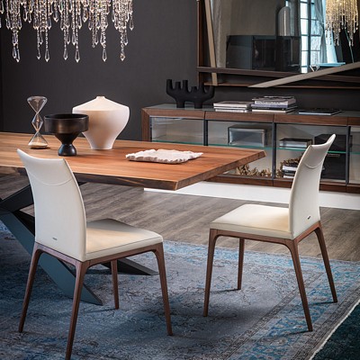 Arcadia étkezőszék. Olasz dizájn szék többféle típusú és számtalan színű bőrrel és szövettel, bükkfa lábbal. Többféle méretben elérhető, amelyhez számos további stílusban hozzáillő termék is választható.