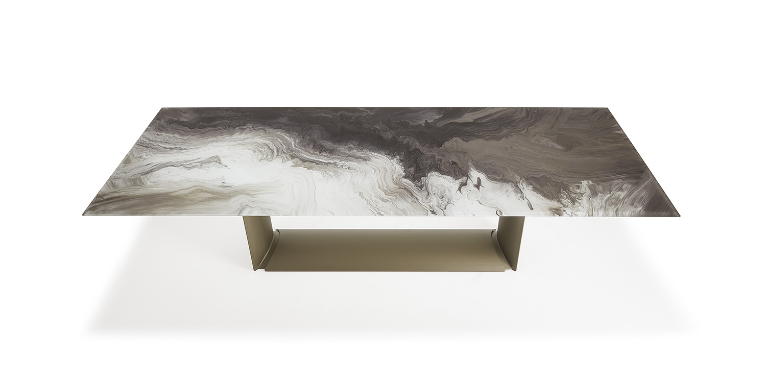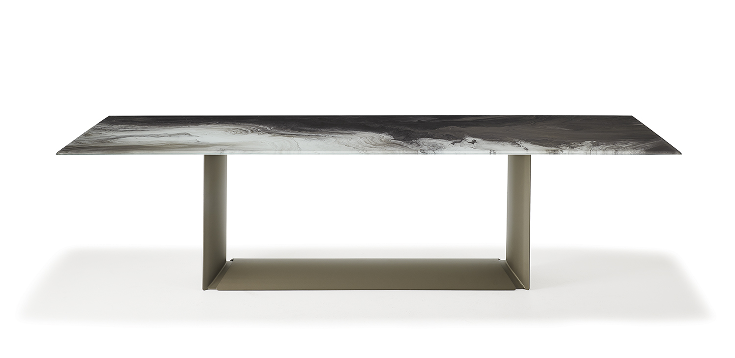 A Cat. Dragon Crystalart a Cattelan Italia luxus kategóriás étkezőasztala, amely a precíz vonalvezetést és a letisztult formavilágot ötvözi. Egyedi dizájnját az élek és az ívelt formák harmonikus egyensúlya határozza meg, míg az acél váz és a művészi üveglap elegáns és modern megjelenést kölcsönöz a térnek.
