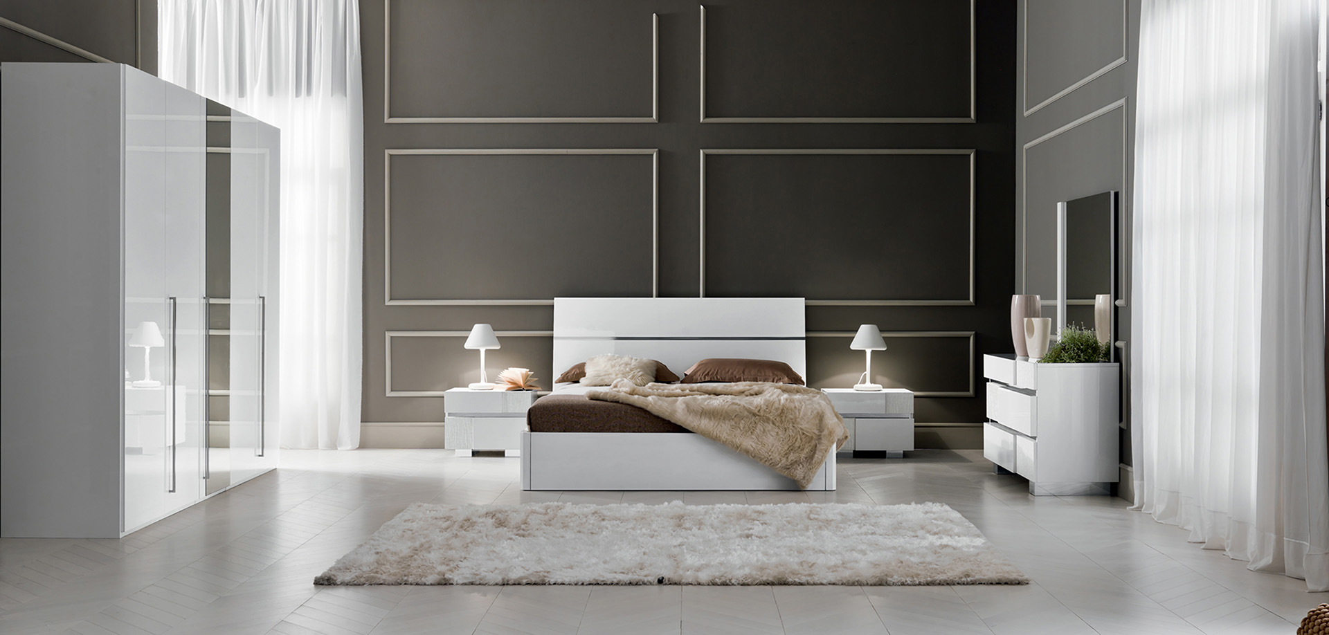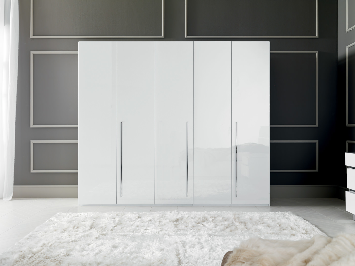 STA. Caprice fehér színű olasz gardróbszekrény többféle méretben, kettőtől egészen hatajtós változatig. Nagy tárolóhelyeivel, gyönyörű fényes felületeivel és monumentális megjelenésével hálóhelyiségek esztétikus, ugyanakkor rendkívül praktikus felszereléseként ismerhető meg.