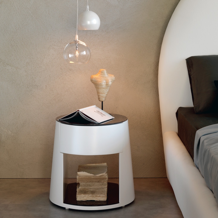 Egyedi külső olasz tervezés! Fiókkal és edzett üveglappal szerelt éjjeliszekrény a Cattelan Italia jóvoltából.