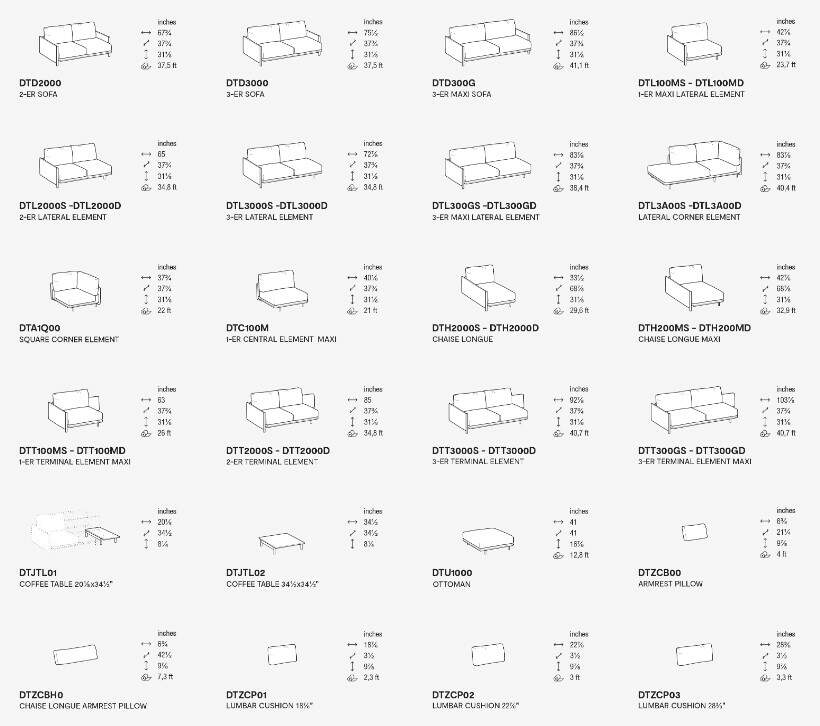 A NIKI kanapé moduláris felépítésének köszönhetően számos konfigurációban elérhető, beleértve a 3 és 4 személyes változatokat, valamint opcionálisan integrált dohányzóasztal-modullal is rendelhető, amely tovább növeli a funkcionalitást és a stílust. A kanapé különböző méretekben kapható, például a 4 személyes változat méretei: 322 x 96 x 79 cm (Szélesség x Mélység x Magasság). Az ülésmagasság egységesen 43 cm, míg az ülésmélység 62 cm, biztosítva a maximális kényelmet.