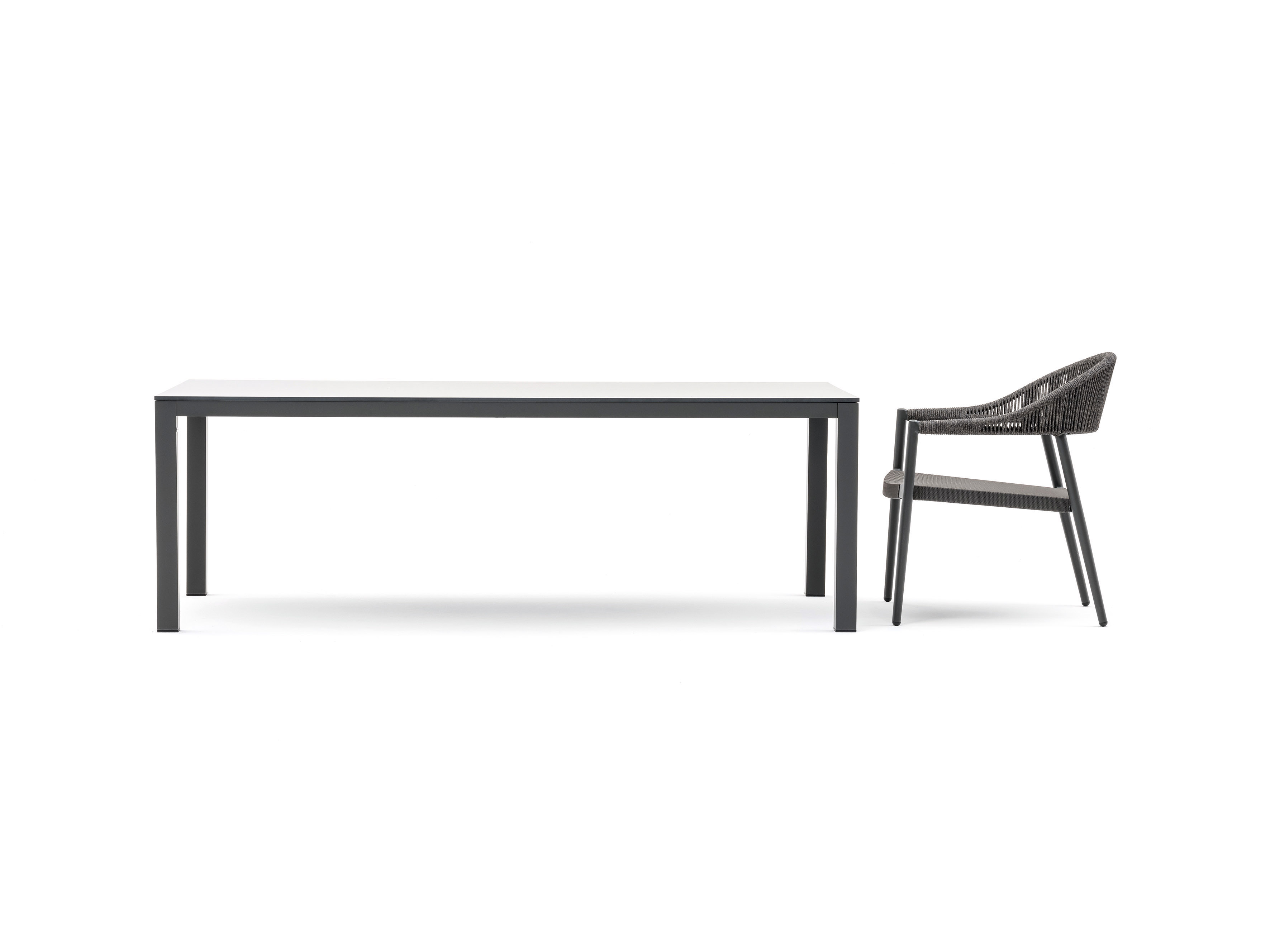 VAR. VIC. stílusos formatervezésű dizájn étkezőasztal alacsonyabb kivitelben. Harmonikus minimalista lábszerkezet ad támaszt a szögletes alakú asztallapnak. A Var. Vic.