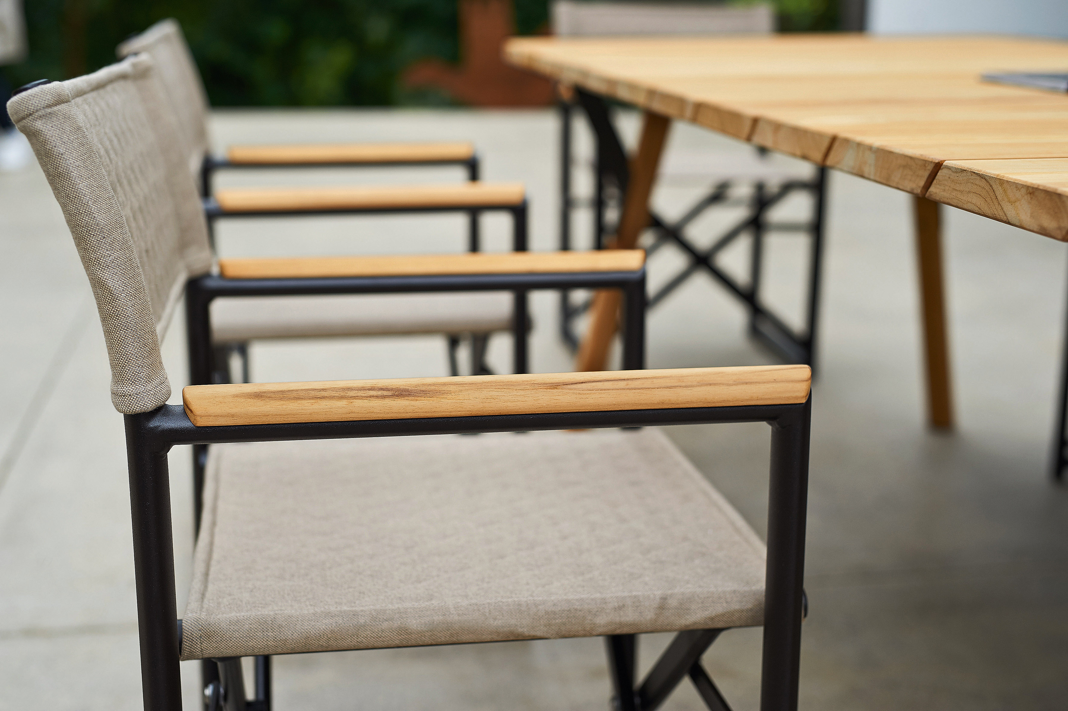 VAR. VIC. stílusos formatervezésű dizájn karosszék. Minimalista ám egyben elegáns konstrukció, rendkívül kényelmes szövet támlával, melyet praktikus módon össze lehet csukni a helytakarékos tárolás érdekében. A Var. Vic. kollekció termékei tökéletesek kertek és egyéb külterek hangulatos, esztétikus berendezésére.