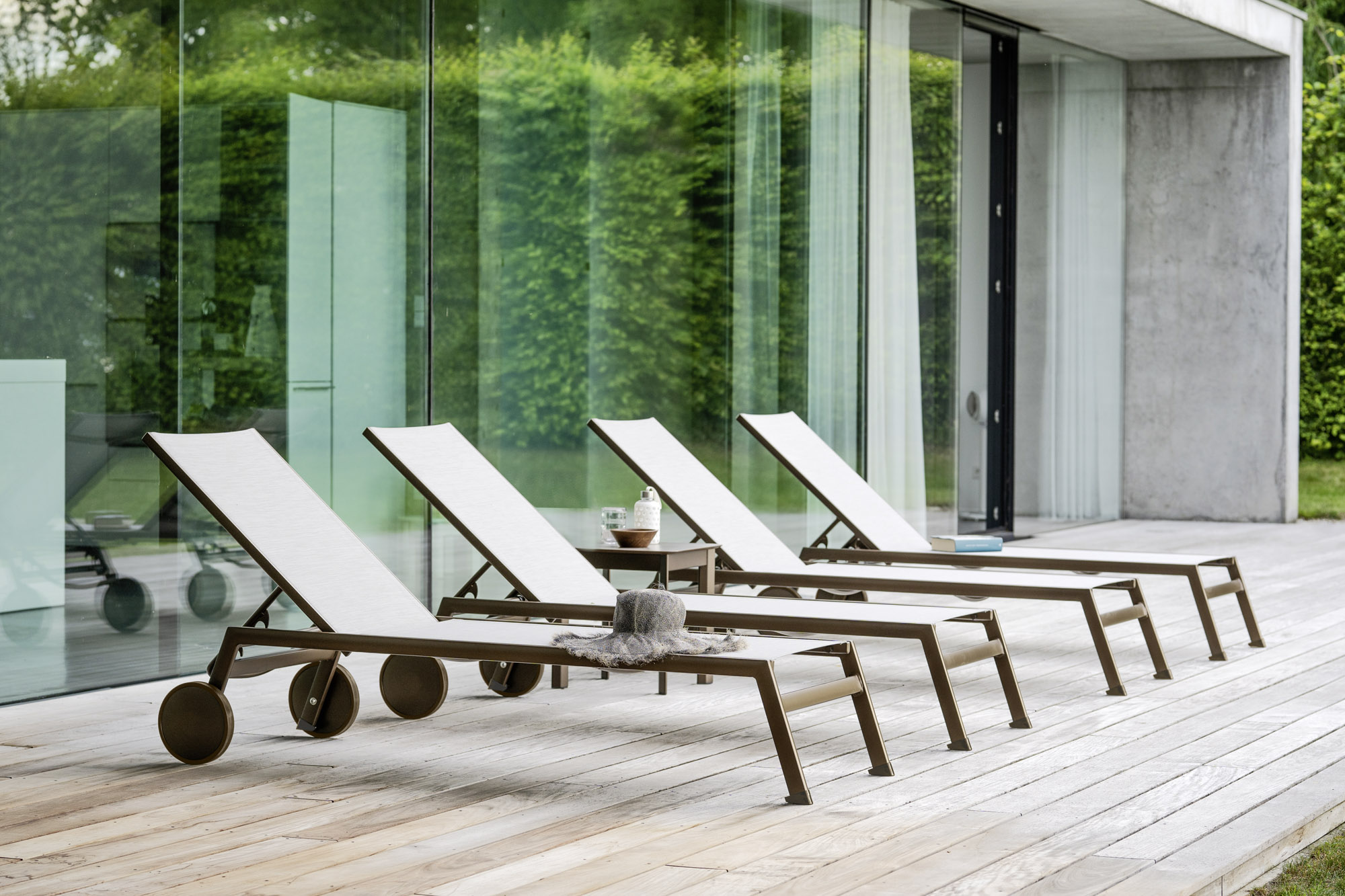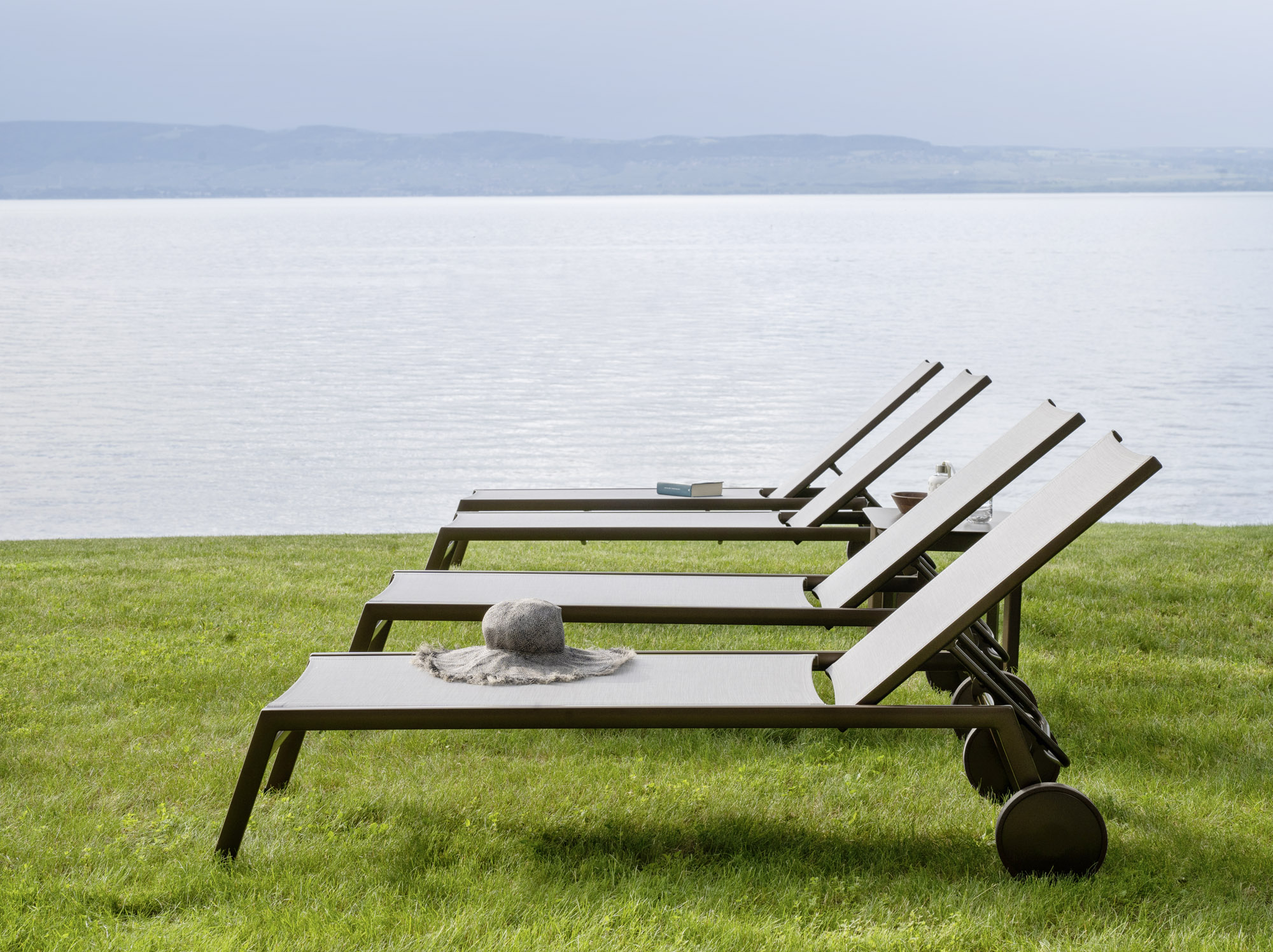 VAR. VIC. stílusos formatervezésű olasz napozóágy pihekönnyű alumíniumvázzal. Elegáns letisztult megjelenése mellett állítható fejtámlájával és légies szövetborítással biztosítja a kényelmes kikapcsolódáshoz az ideális körülményeket. A könnyebb mozdíthatóság érdekében kerekekkel is felszerelhető. A Var. Vic. kollekció termékei tökéletesek kertek és egyéb külterek hangulatos, esztétikus berendezésére.