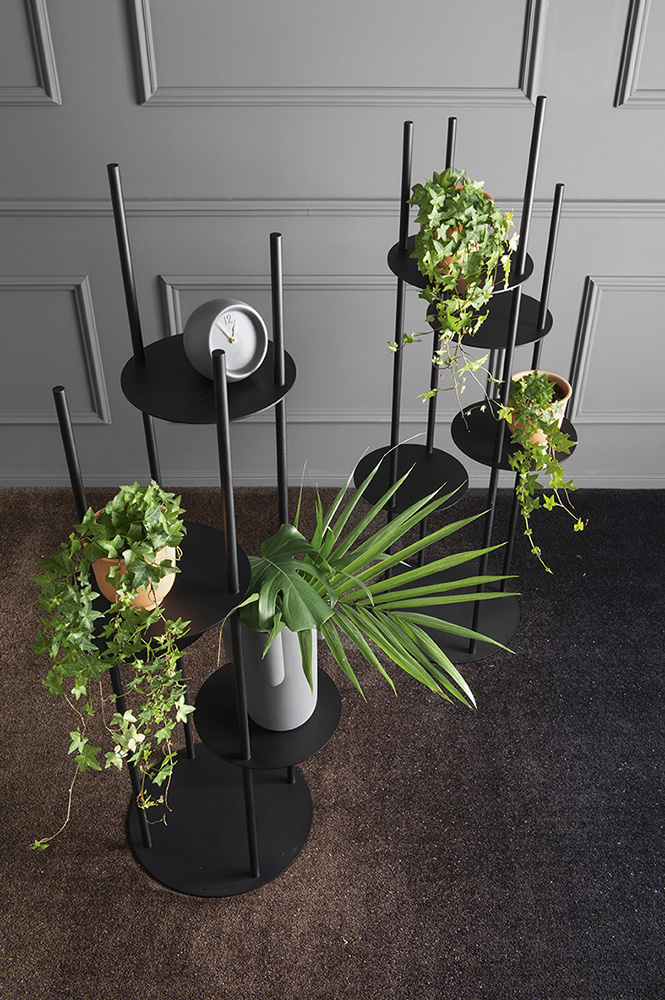 A Circles egyedi formavilágát a négy kör alakú, különböző magasságban elhelyezett fém polclap adja, melyeket eltérő hosszúságú fémrudak tartanak. Ez a megoldás nemcsak dinamikus, játékos megjelenést kölcsönöz a bútordarabnak, hanem optikailag is könnyeddé és légies hatásúvá teszi. A polc így nem csupán praktikus tárolófelület, hanem igazi dizájnelem, amely bármilyen helyiségben azonnal magára vonja a figyelmet.