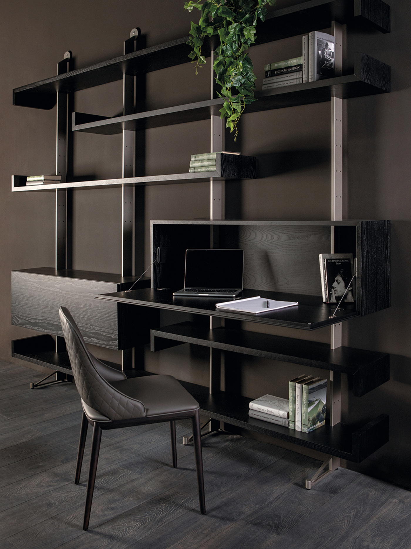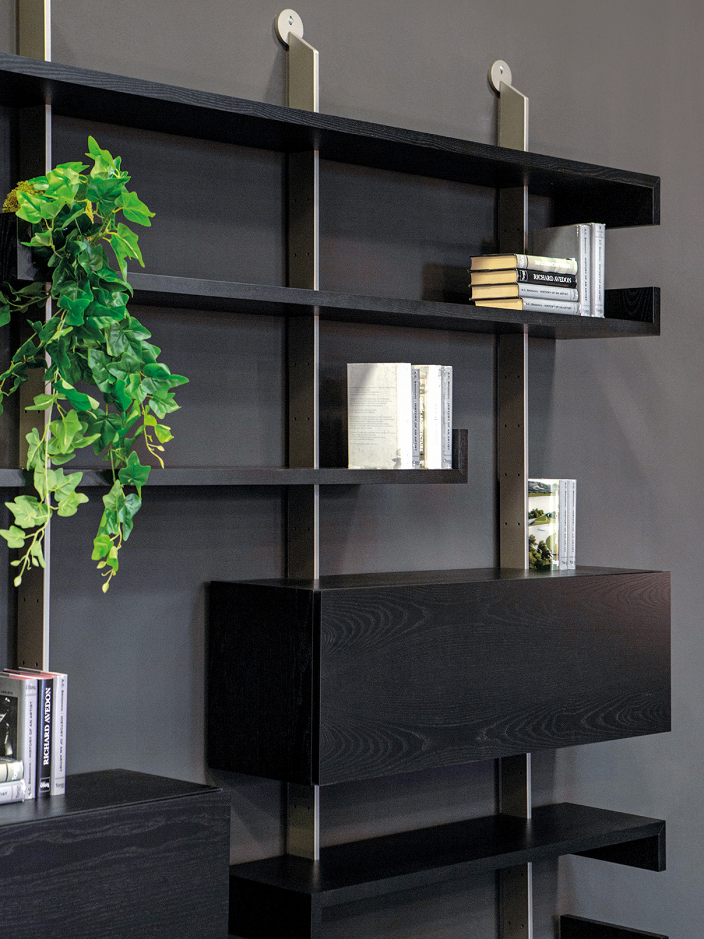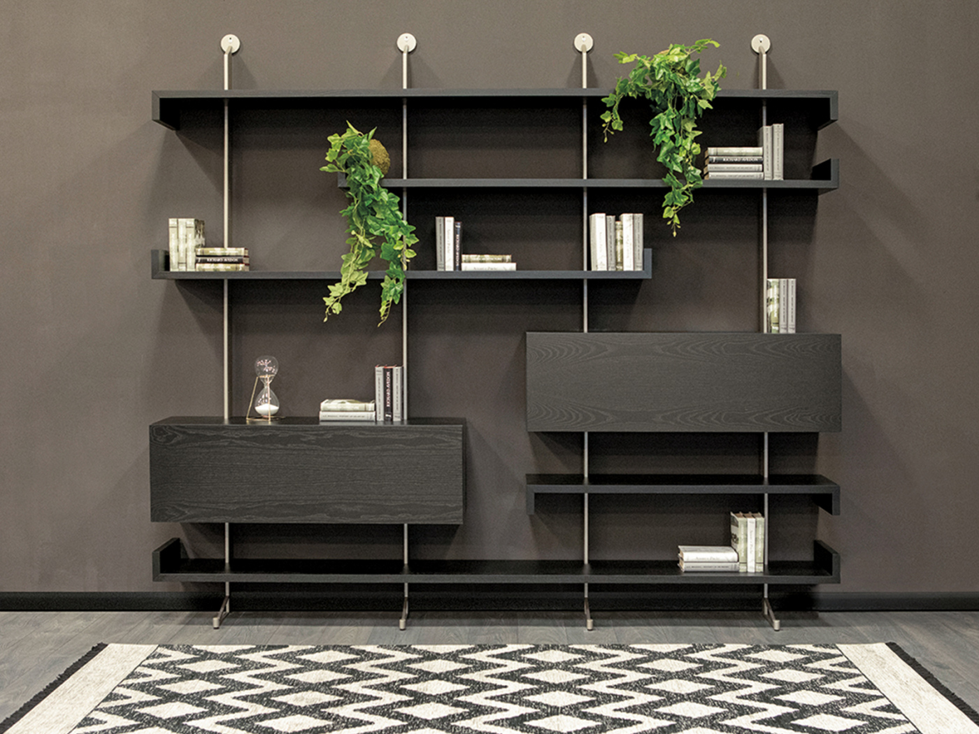 Ton. Plan dizájn könyvespolc. Könnyed vonalaival eredeti és praktikus darab, mely bármilyen környezethez és ízléshez megfelelő. Különböző funkciójú zárható tárolókkal is felszerelhető.