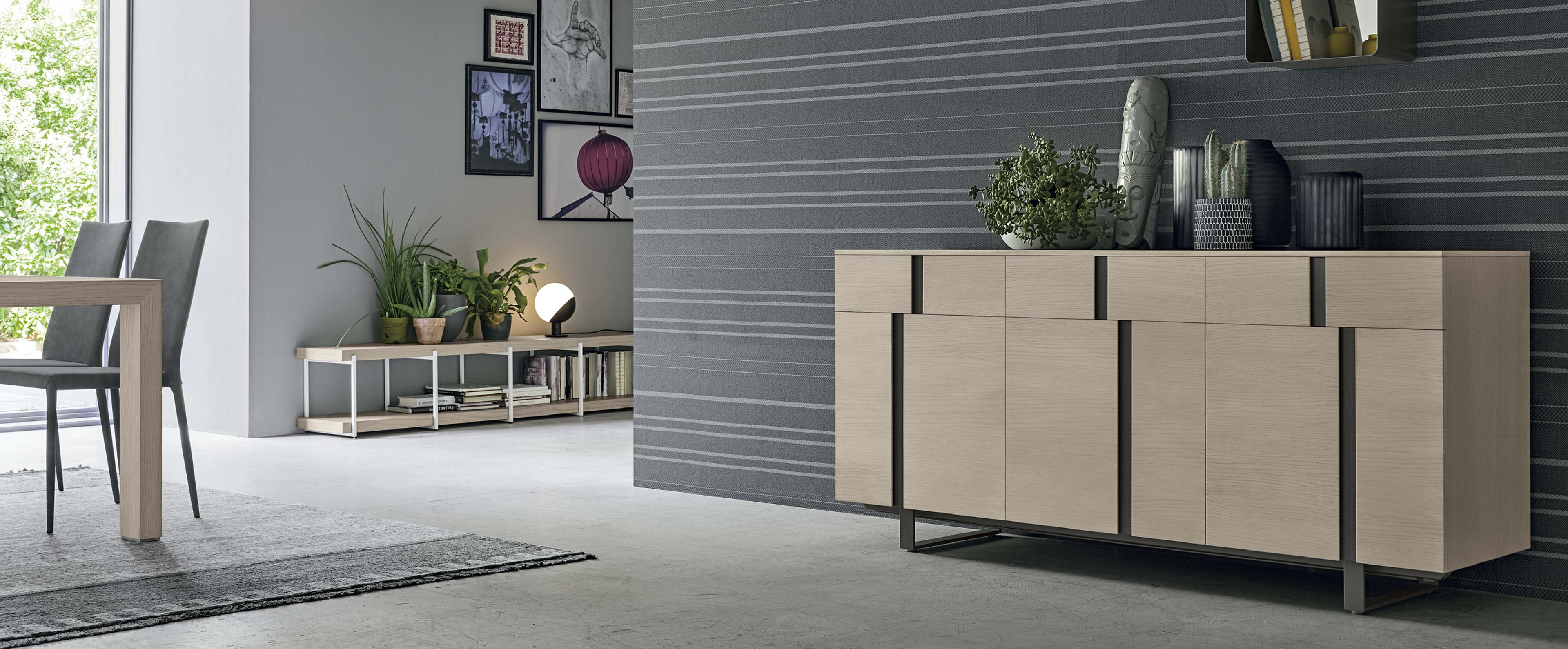 TMS. Athjena olasz dizájn komód kétféle méreteben. Kőrisből készült struktúrával és fém lábszerkezettel készül. Különböző színek és borítások választhatók a válaszvonalakhoz és a főbb borításokhoz egyaránt, hogy még egyedibbé tegye a tálalókomódot.