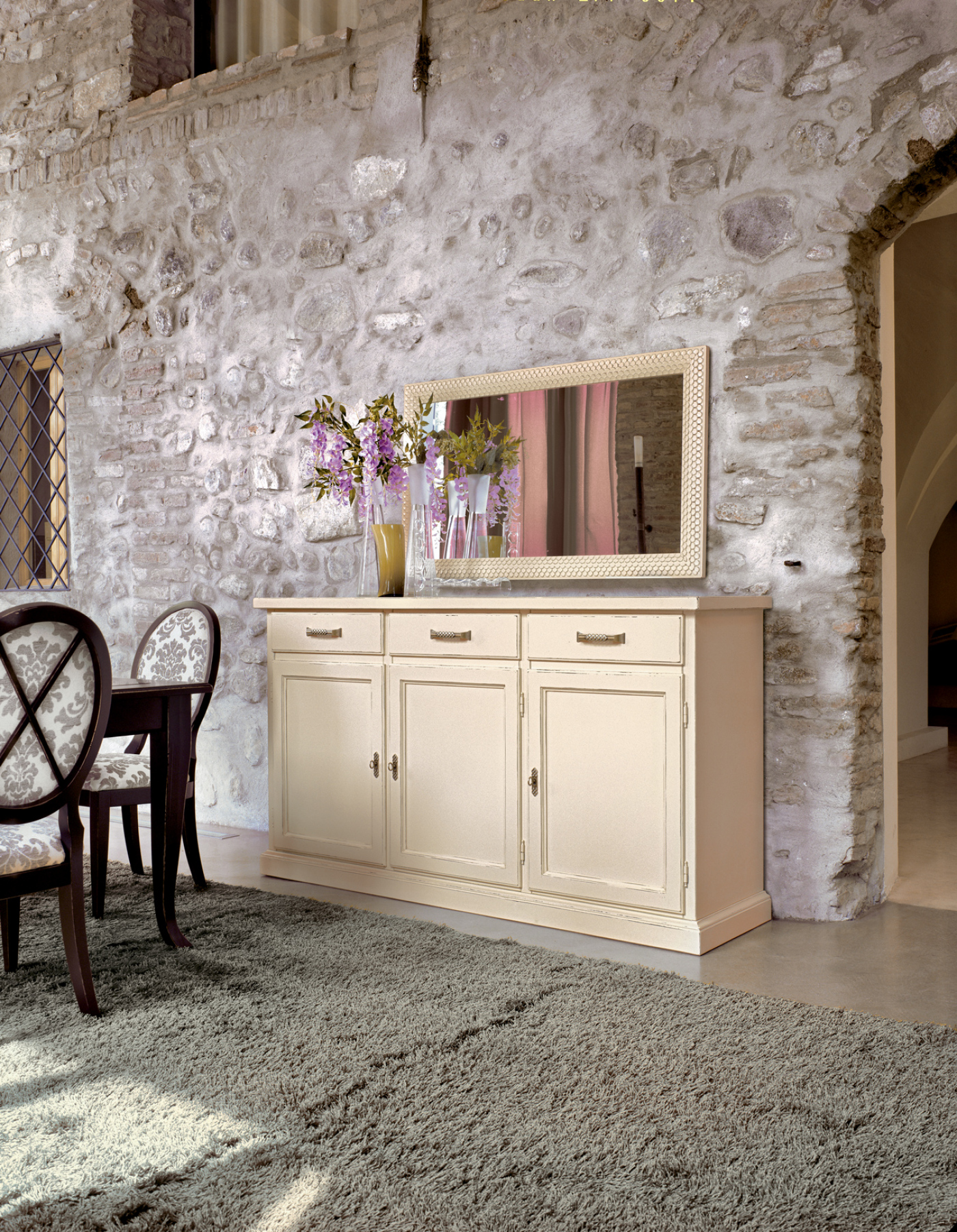 Ton. Galizia klasszikus stílusú olasz dizájn tálaló komód. Maximálisan funkcionális és esztétikus bútordarab nappalikba, antik hangulatot idéző megjelenéssel. Finom részletei mellett praktikus fiókos és szekrényajtós tárolóhelyekkel rendelkezik.