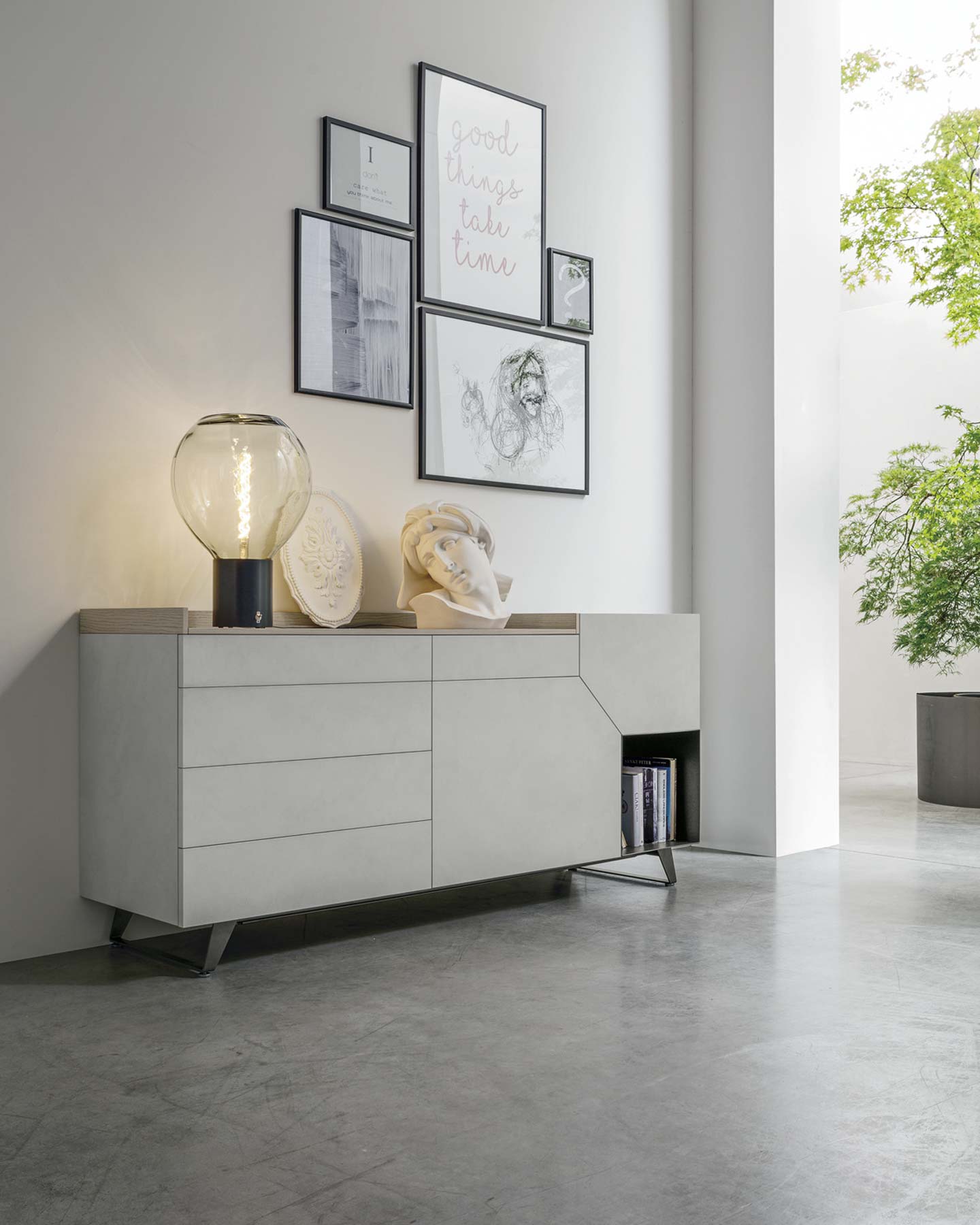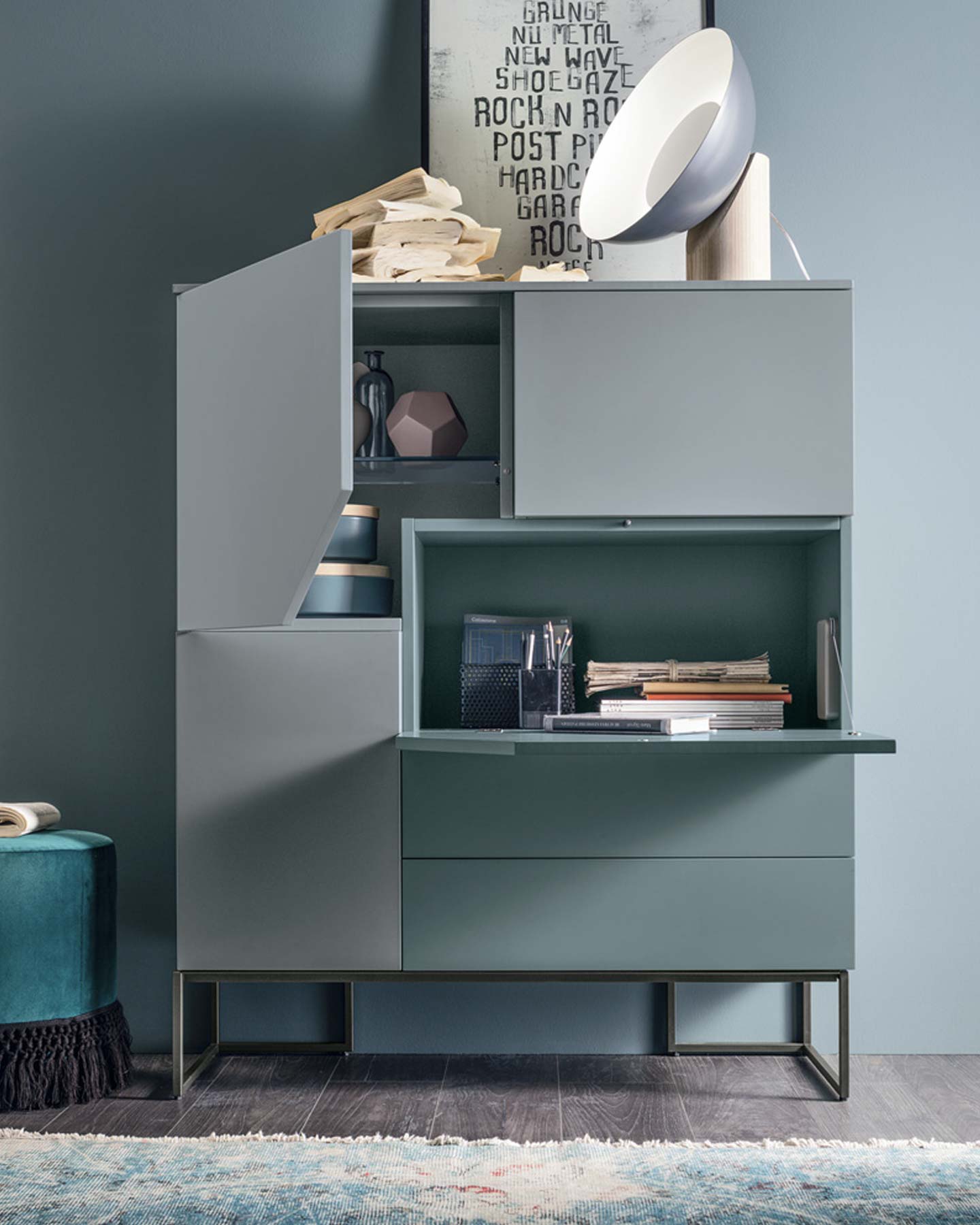 TMS. Remix olasz dizájn komód ötféle méreteben. Megkülönböztető jegyei a levágott sarkoknál illesztett ajtók, melyekkel aszimmetriái ellenére is kiegyensúlyozott képet ad. Választható borítással és színkombinációkban kapható.