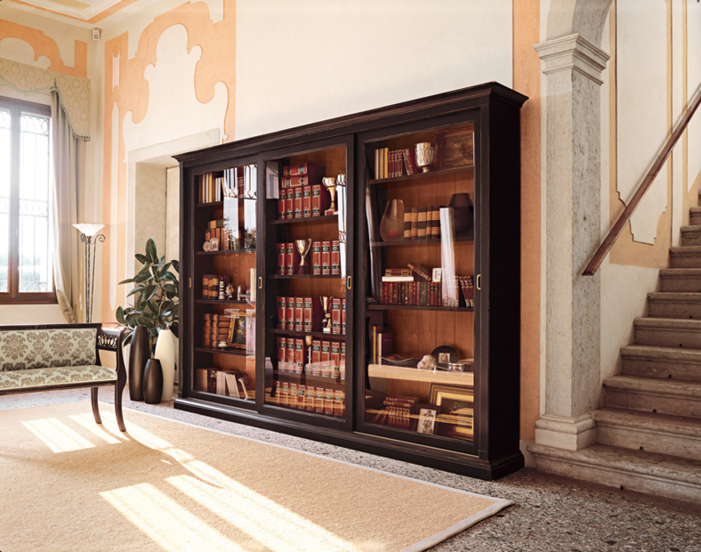 Ton. Selena elegáns, klasszikus stílusú olasz dizájn könyvespolc sok rekeszes széles felosztással, üvegajtókkal. Minőségi fából és üvegből készült struktúrájával, letisztult antik megjelenésével szinte bármilyen helyiségben praktikus és fényűzést sugárzó tárolóhelyként szolgálhat. A könyvespolc választható színben rendelhető.