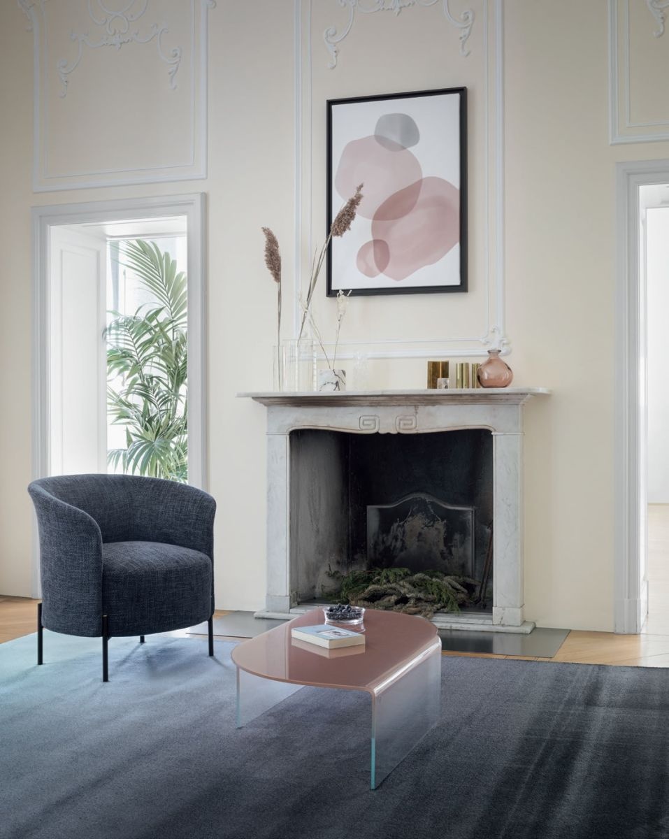 A fotel bőr- vagy szövetborítással rendelhető, többféle színben, így könnyen illeszthető különböző enteriőrökbe. A Rendez-Vous fotel stabil és elegáns négy fém lábon áll, amely alul fényes sárgaréz vagy fekete-nikkel kivitelben érhető el, így a bútor letisztult, mégis karakteres megjelenést kap. A kontraszt a finom, puha vonalak és a szilárd, elegáns fém lábak között modern és stílusos hatást eredményez, amely a fotelt a tér központi elemévé emeli.