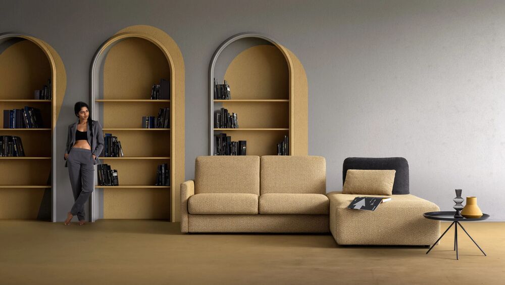 A Home Italy Sax kanapé egy elegáns és praktikus ülőgarnitúra, amely a modern nappalik igényeihez igazodik. Ez a konvertibilis kanapé gyorsan átalakítható kényelmes ággyá a 13 cm vastag, formastabil habmatraccal, így nappali és hálószoba funkciót is betölt.